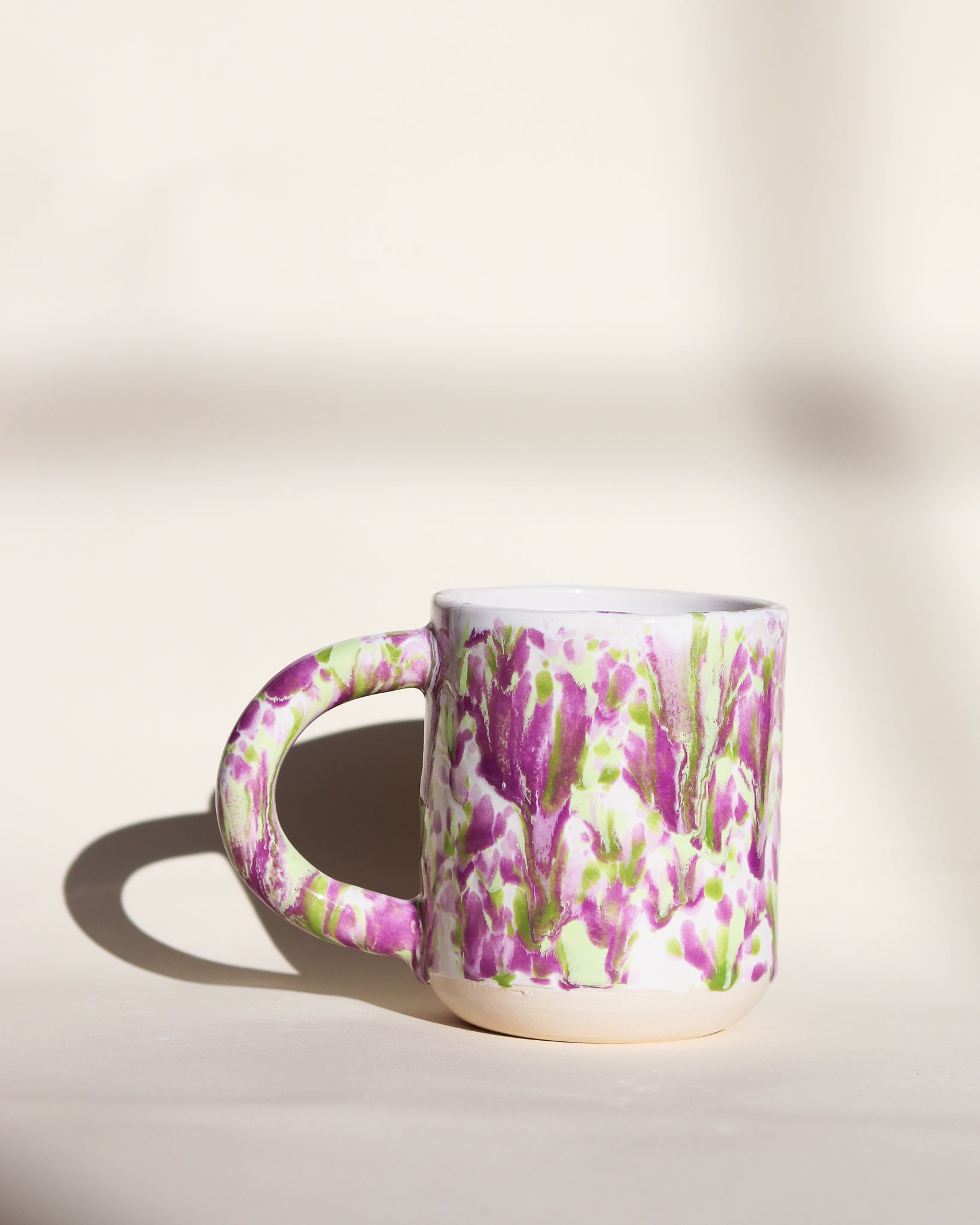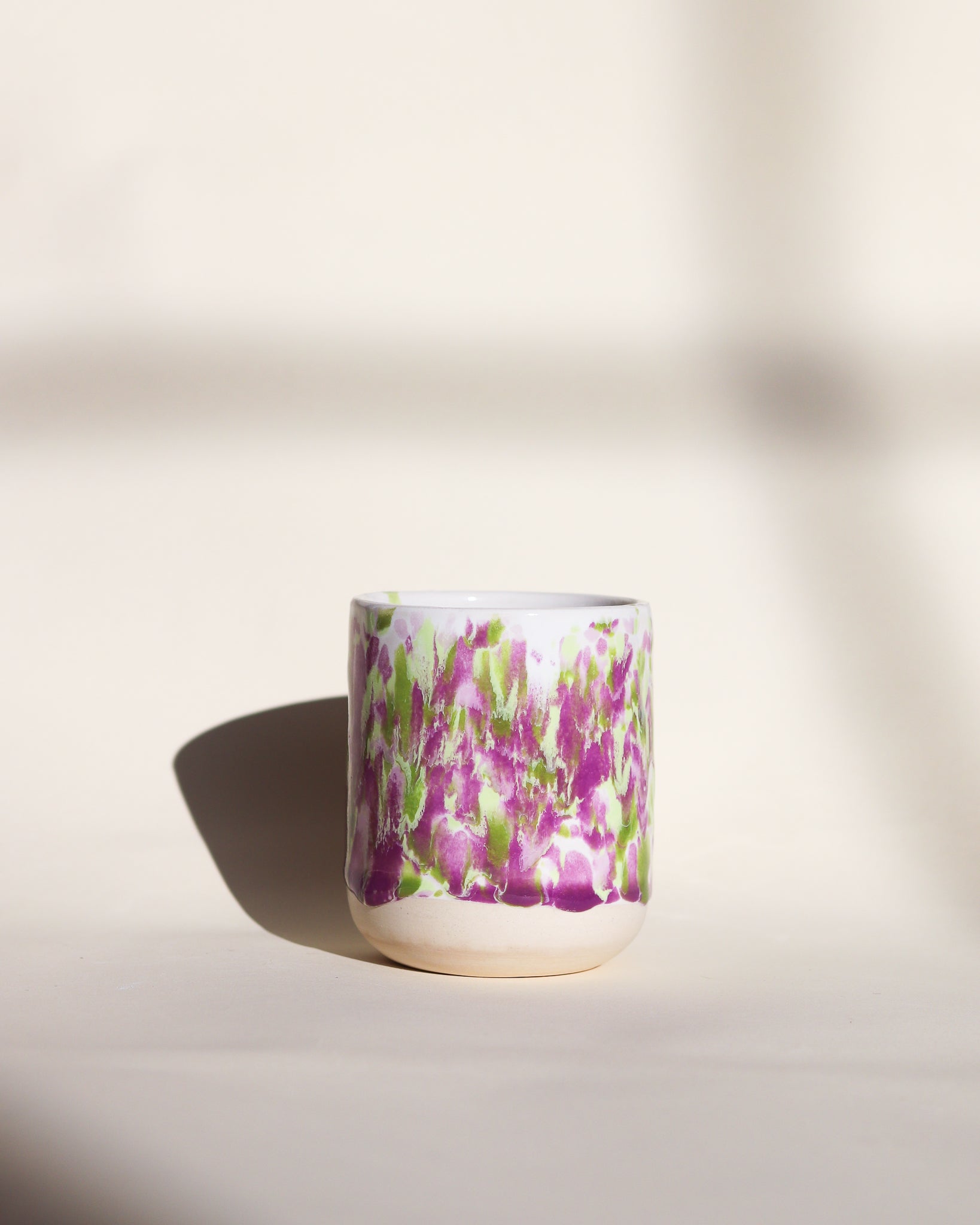 The Drift & Bloom collection is inspired by my love for all things the color. This color way was inspired by warmer days and the purples and greens of lilacs. All pieces are fully glazed cream stoneware, available in espresso cups, tumblers, and mugs.