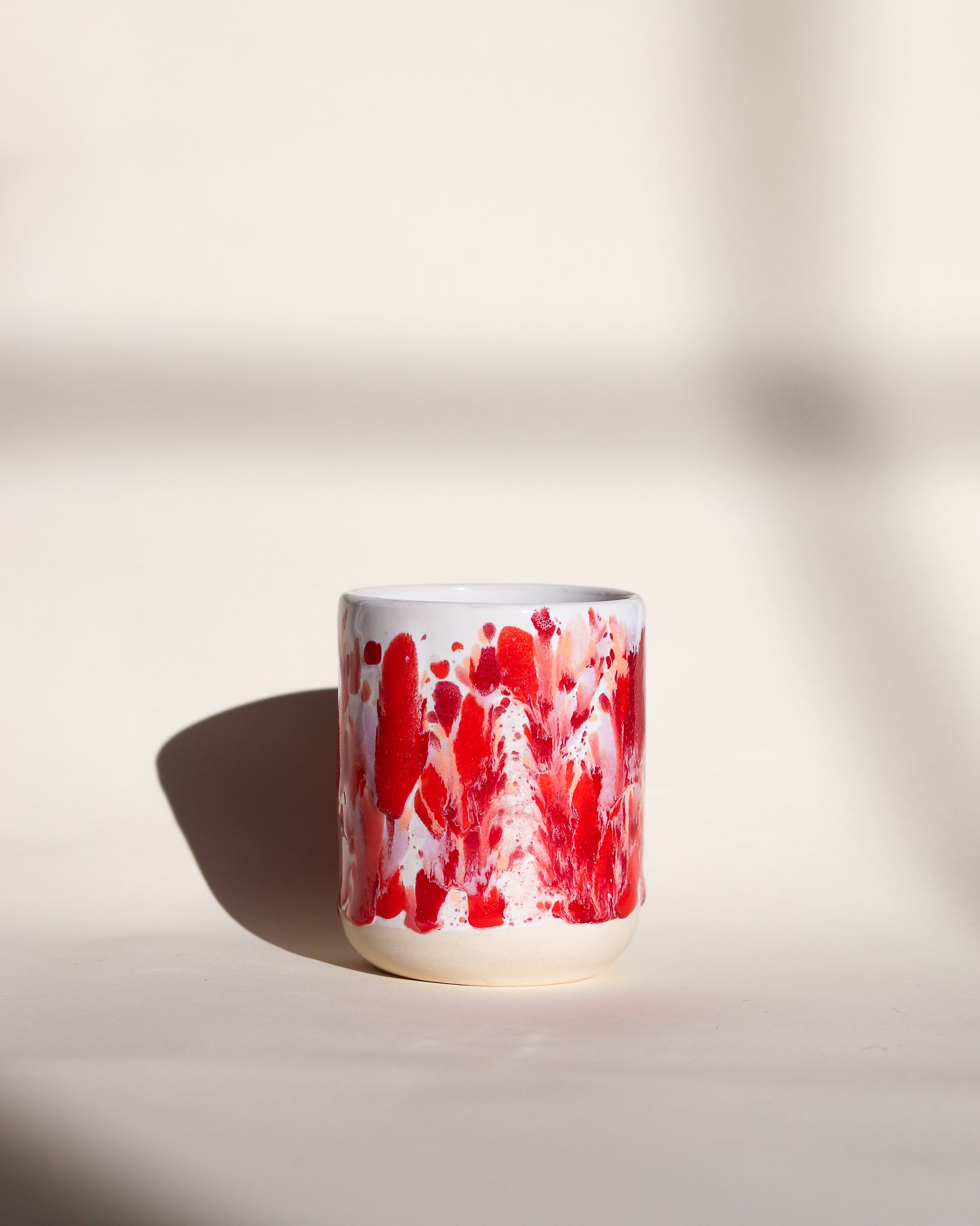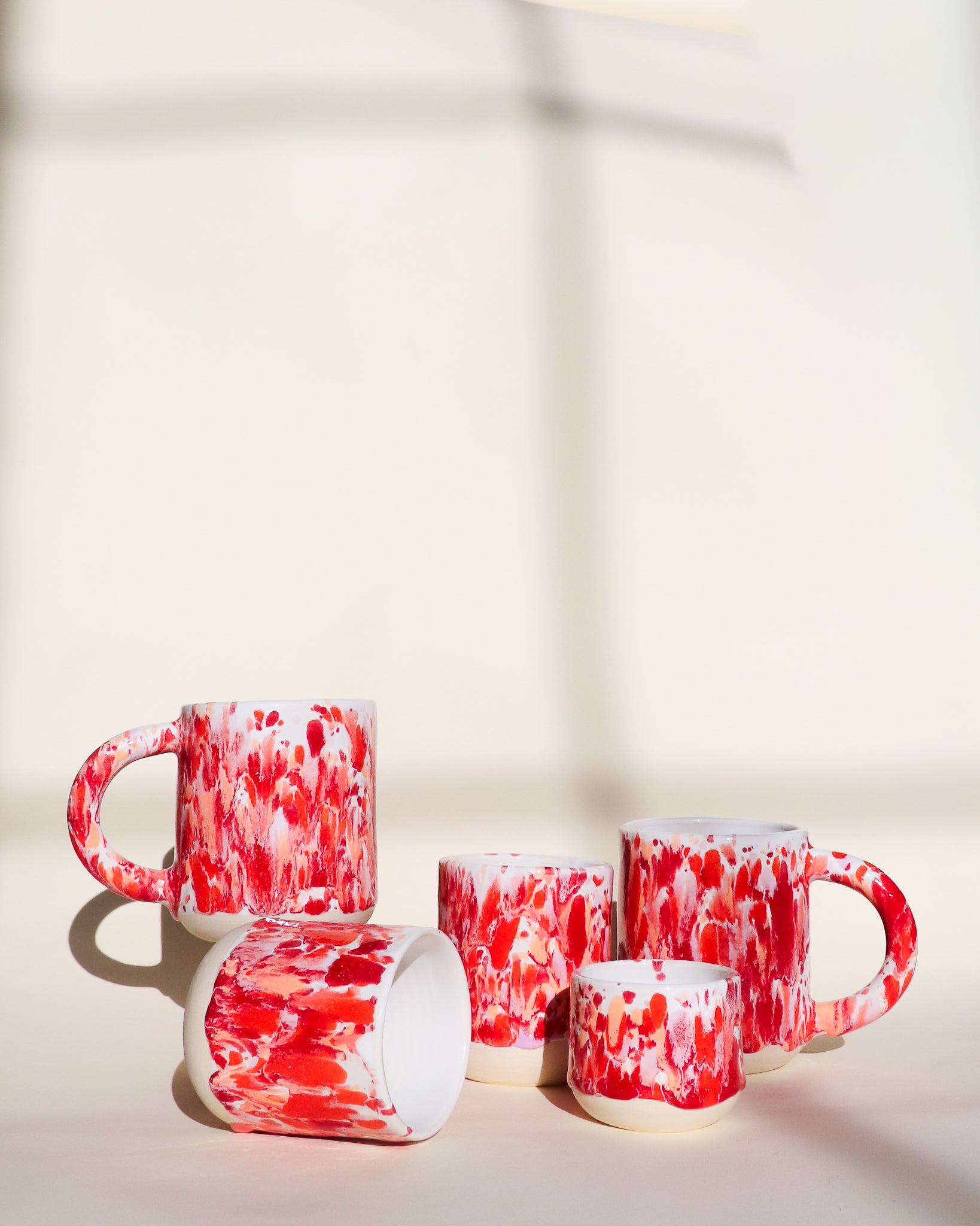 The Drift & Bloom collection is inspired by the colors of winter with a nod to enamelware nostalgia. This colorway was inspired by peppermint. All pieces are fully glazed cream stoneware, available in espresso cups, tumblers, and mugs.