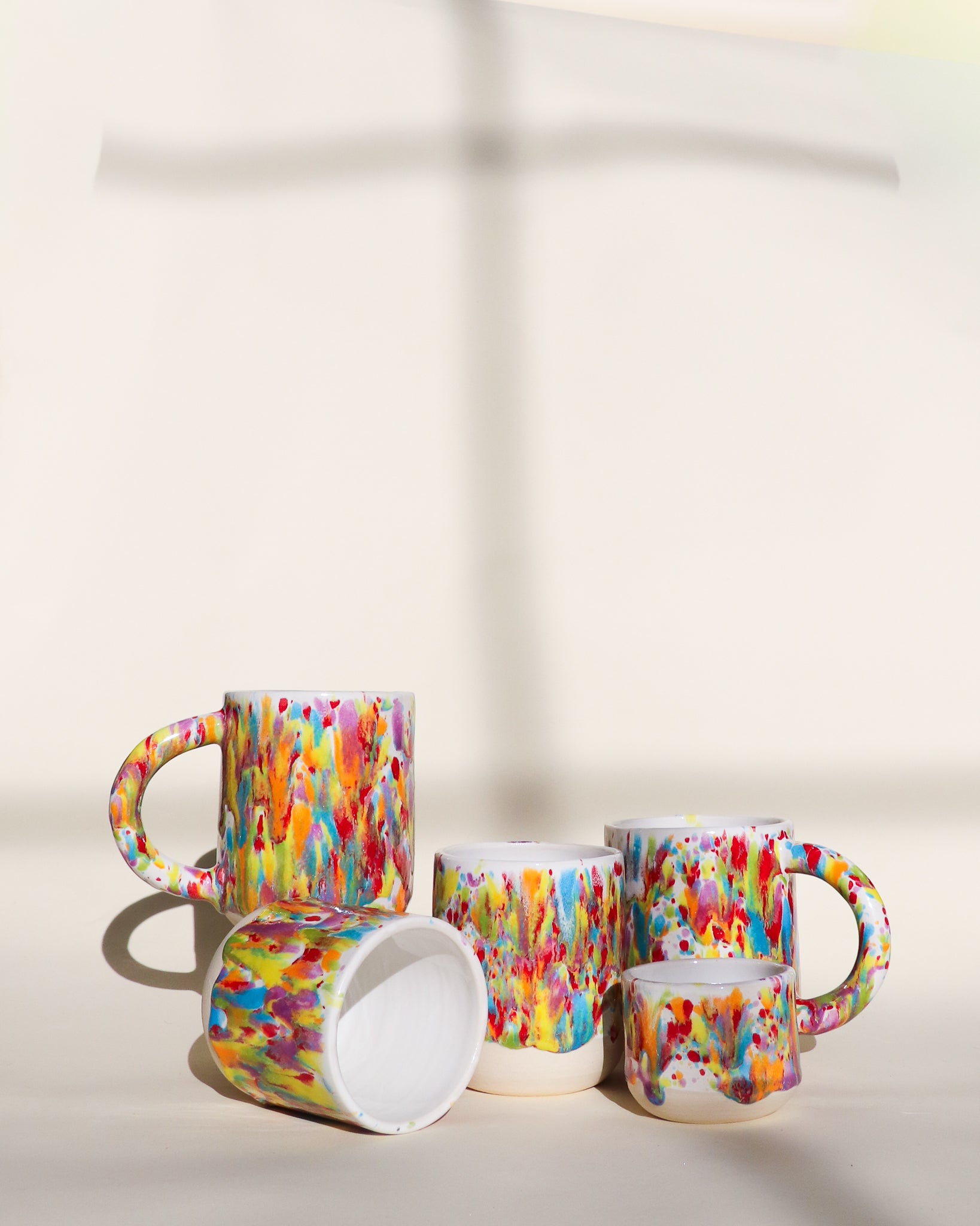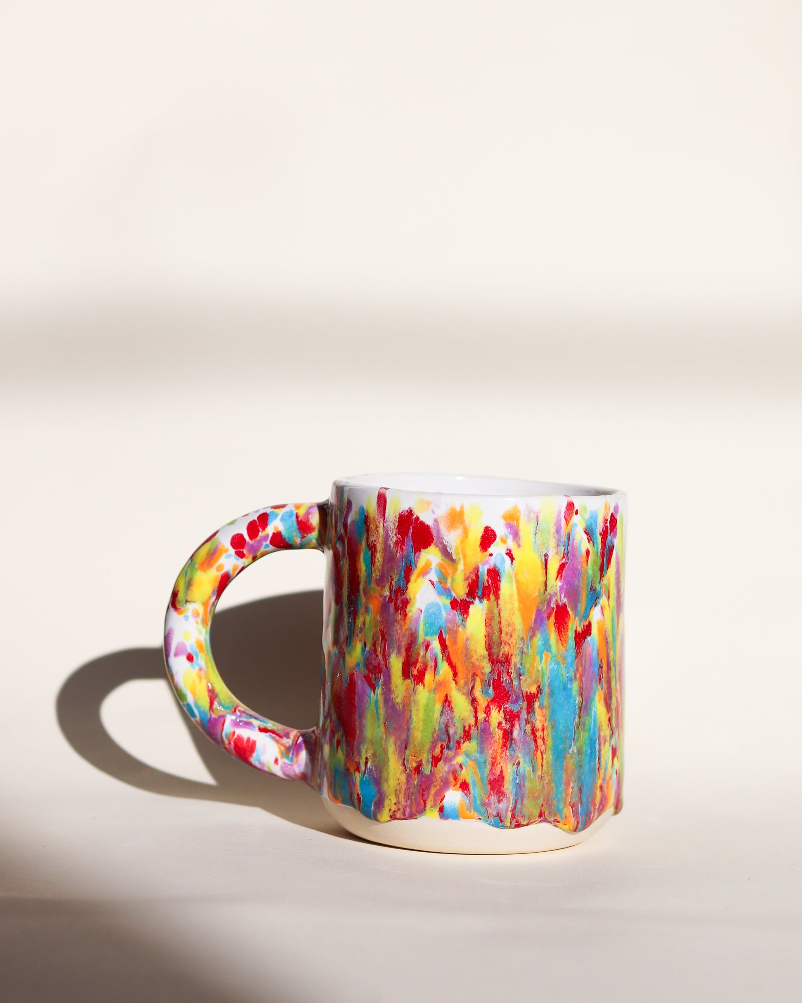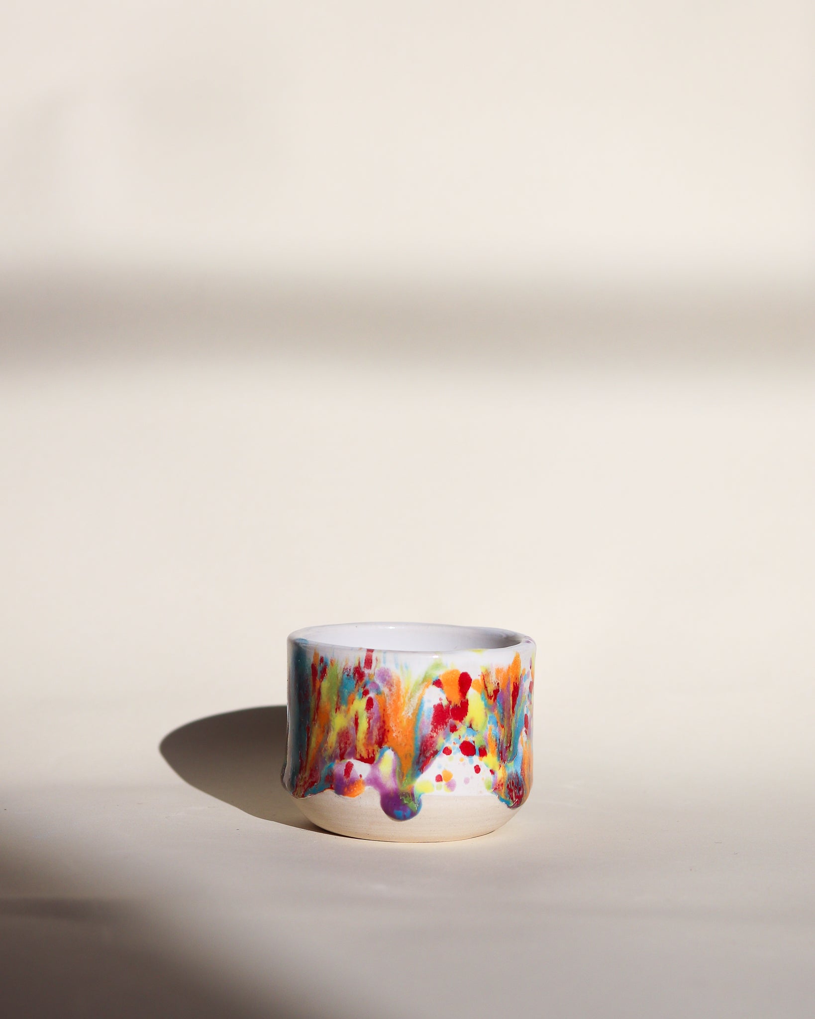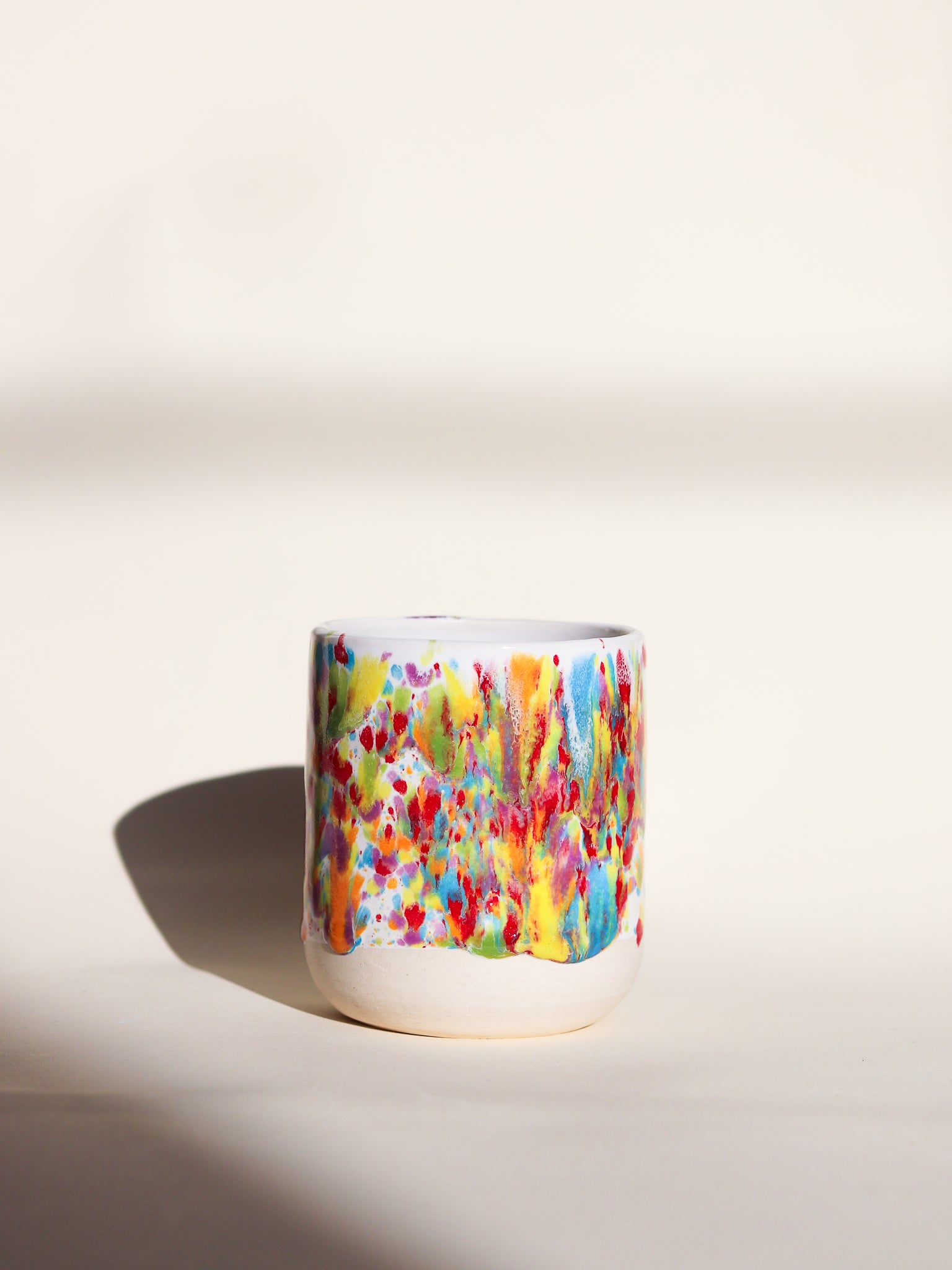 The Drift & Bloom collection is inspired by my love for all things the color. This color way was inspired by the rainbow. All pieces are fully glazed cream stoneware, available in espresso cups, tumblers, and mugs.